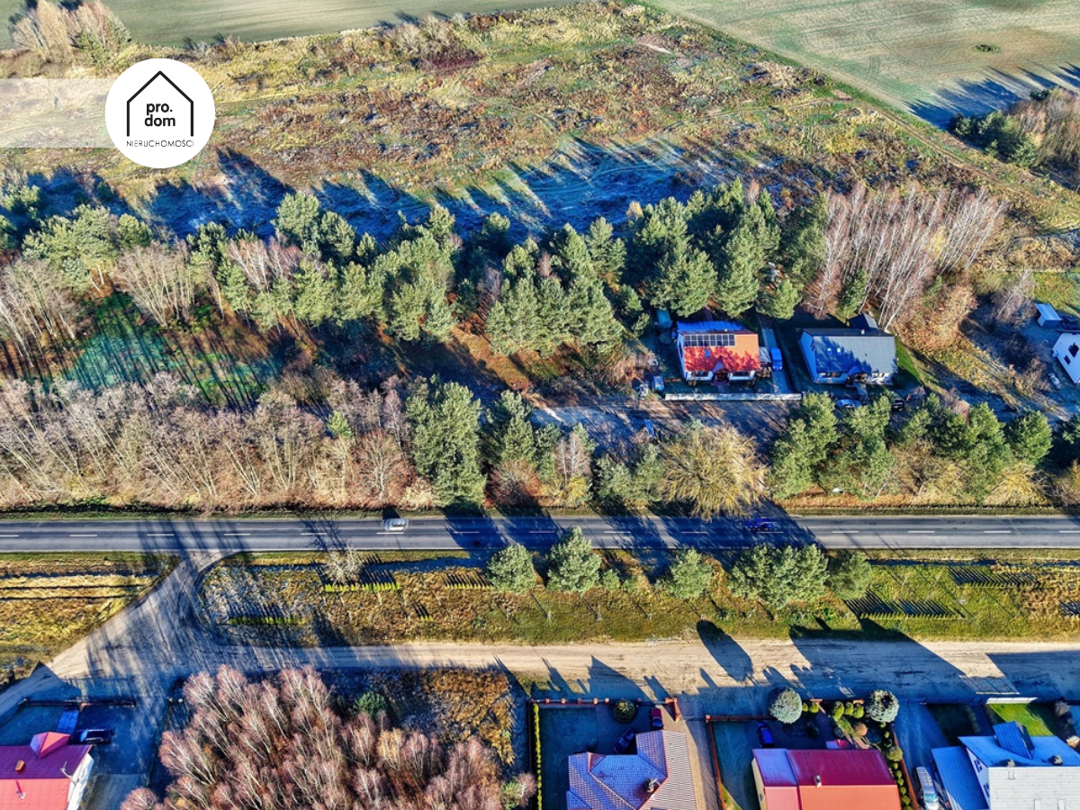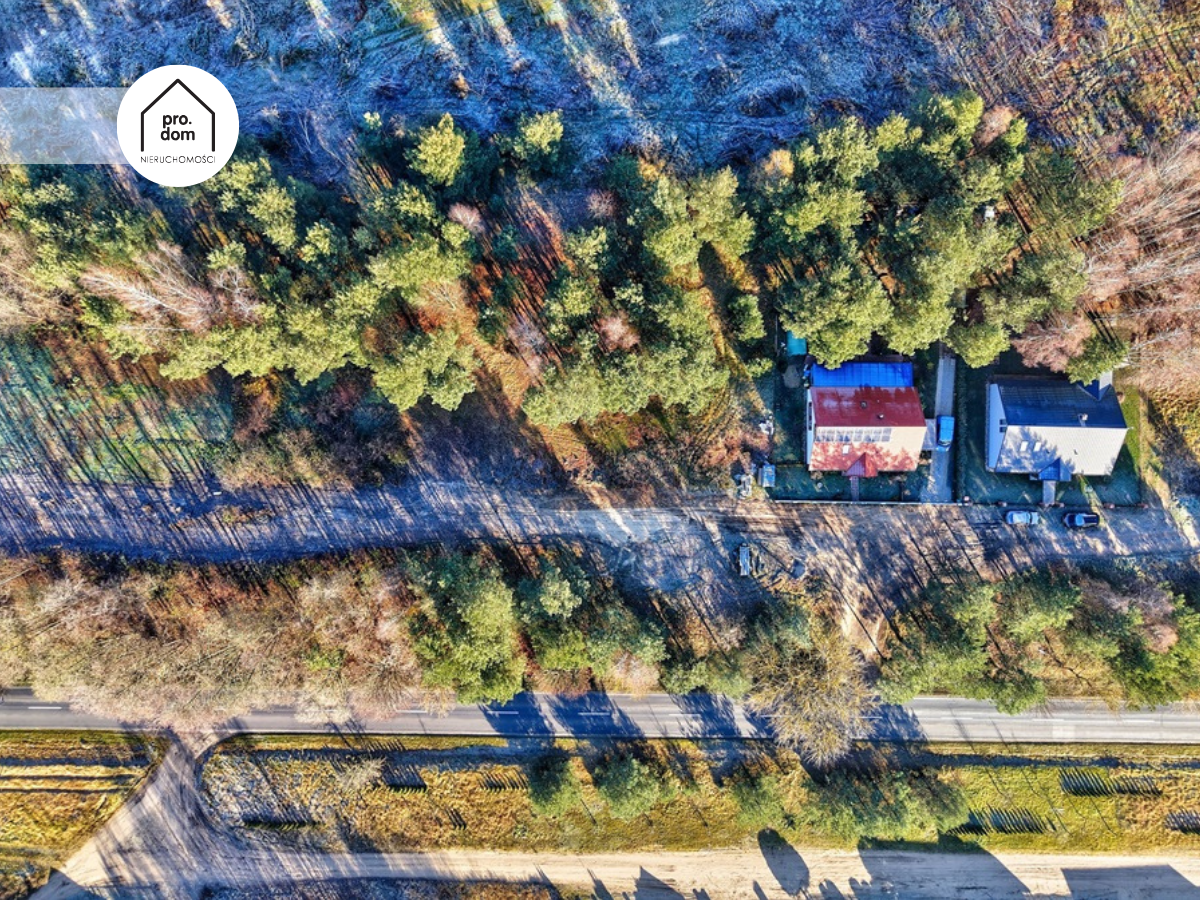 Między drogą publiczną a drogą wewnętrzną istnieje naturalny zielony bufor drzew.